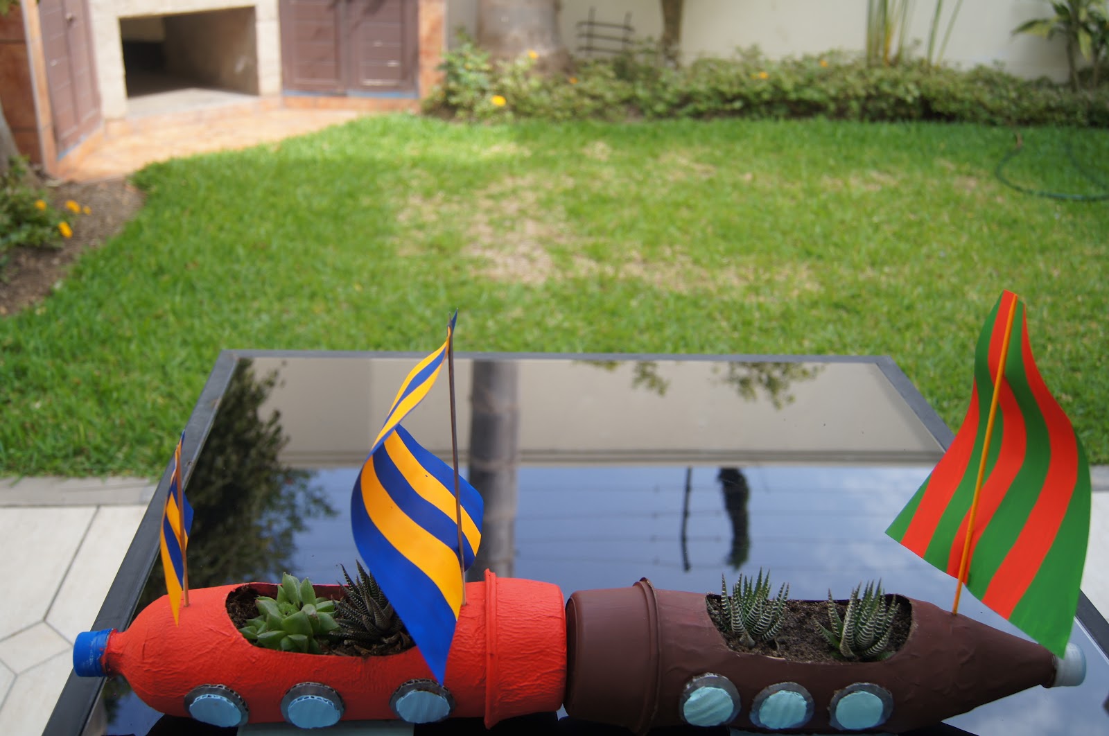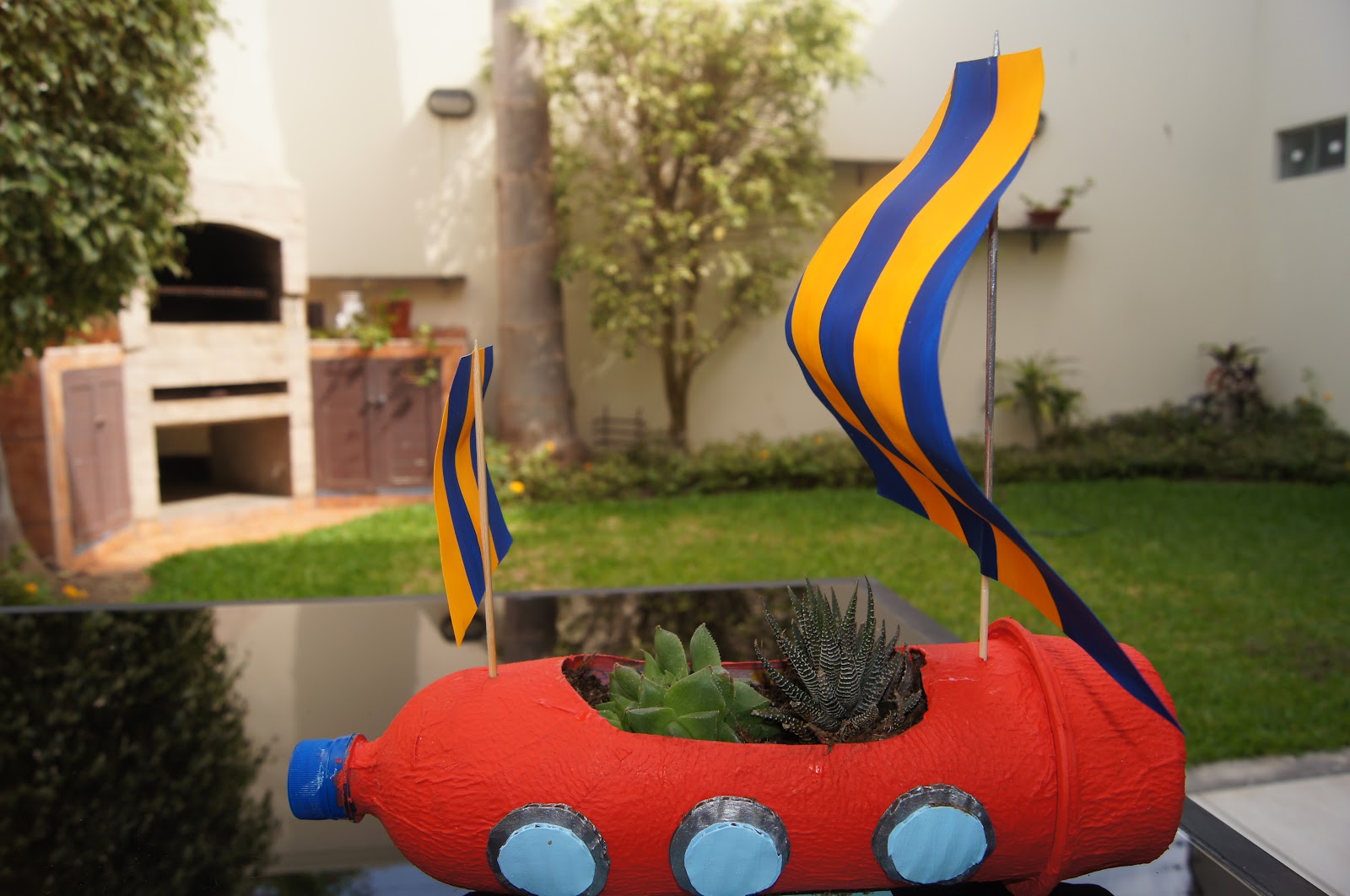 Para mi proyecto utilicé botellas recicladas e hice un par de barcos, ya que en mi caso tengo que presentar doble proyecto!! No fue muy difícil de hacer. sólo necesitas tener un poco de imaginación!! Esto fue lo que hice:
