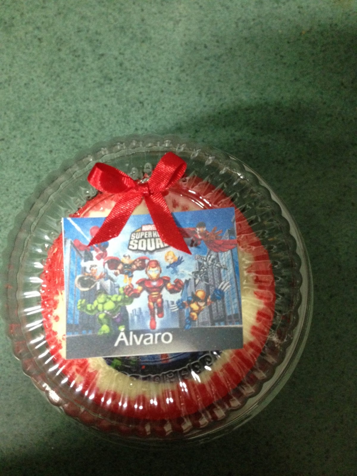 6. Finalmente, el viernes iba a ir disfrazado… pero no se levantó de buen ánimo pero les regaló a sus amigos un cup cake, cup cakes de princesas para sus amigas porque a esta edad adoran a las princesas de Disney y para los niños cup cakes de los vengadores, mejor dicho del escuadrón de súper héroes, el dibujo favorito de Álvaro.